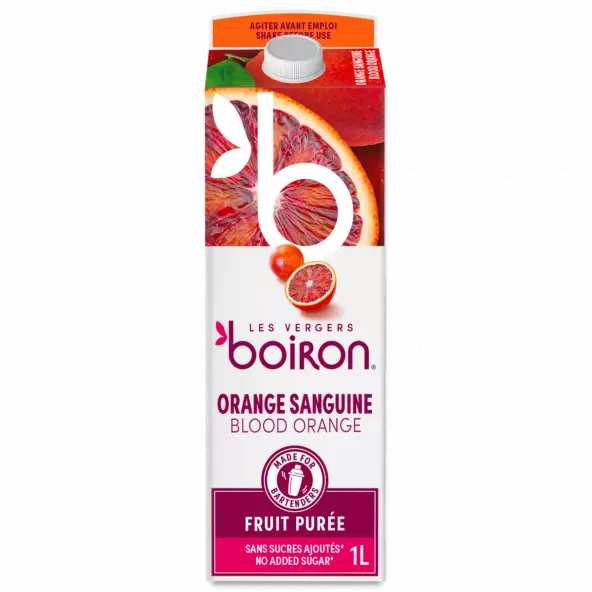 100 % blodappelsinpuré, pasteurisert naturlig produkt som kan oppbevares i romtemperatur