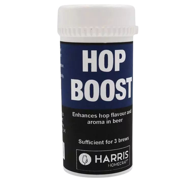 Hop Boost / Humleboost er et enzym av matkvalitet som bruker biotransformasjon for å øke kompleksiteten til humlearomaer og smaker i hjemmelaget øl. Den uttrykker mer karakter fra humle og forbedrer ølets munnfølelse og drikkebarhet ved å redusere ubehagelig, hard bitterhet. Humleboost forbedrer også vørtergjærbarheten. Visp ganske enkelt ett hetteglass inn i en halv kopp vann og bland grundig. Legg til ølet ved start av gjæring. Tilstrekkelig for 3 brygg.