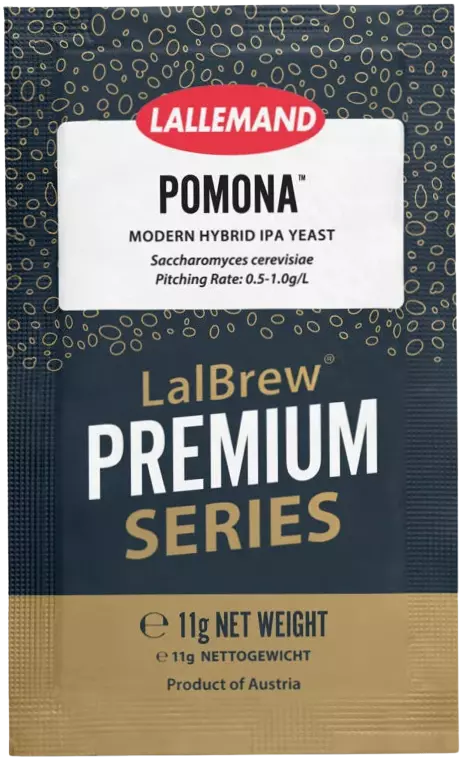 LalBrew Pomona™ er en hybridgjær som er valgt ut for smak og gjæringseffektivitet i humlerike øl. Oppkalt etter gudinnen for frukttrær, produserer LalBrew Pomona™ en unik og saftig smaksprofil med noter av fersken, sitrus og tropiske frukter.